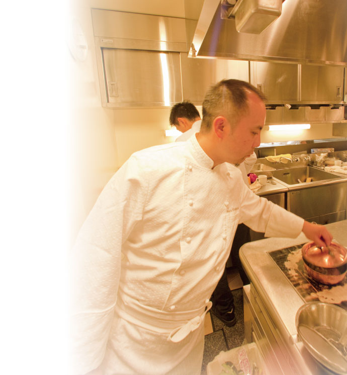Une cuisine d’inspiration française avec des produits 100 % japonais ou presque. Cuisine du produit, avec quelques plats comme le Matsutake (champignon des pins), qui une fois plié dans une feuille de figuier, est cuit en croûte de sel. Un plat de haute volée, le chef Laurent, accompagné du chef Kotaro Hasegawa, ont aussi goûté un filet de truite saumoné aux châtaignes qui valait vraiment le détour.