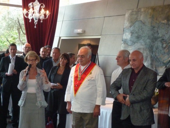 Hélène Mandroux, maire de Montpellier, Lucien Mongelli, co-président des Disciples d’Escoffier et Michel Aslanian, conseiller municipal, initiateur du concours.