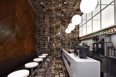 De petite taille (39 m2), ce café est le deuxième du propriétaire Eugene Kagansky qui compte en développer de nombreux sur la ville, tous différents, le prochain devrait être tout à l’envers !