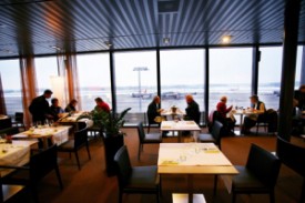 Le plus chic ! Restaurant Altitude, aéroport de Genève : Au 7e étage de l’aéroport de Genève, le restaurant bar-lounge Altitude offre un cadre exceptionnel, avec une vue sensationnelle sur le tarmac et les monts du Jura. Les chefs Gilles Dupont, Thomas Byrne et Fabien Legon, primés au guide Michelin, mobilisent leur savoir-faire et leur passion des saveurs pour nous faire découvrir une cuisine raffinée. Cette invitation au voyage et à la découverte culinaire est accompagnée d’une sélection des meilleurs vins. Parfait pour les voyageurs entre deux avions en mal gastronomie !