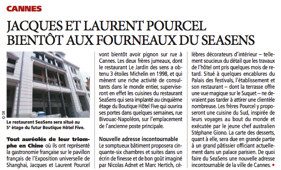 Mots clés: Five Hôtel, Pourcel Cannes, Sea sens restaurant