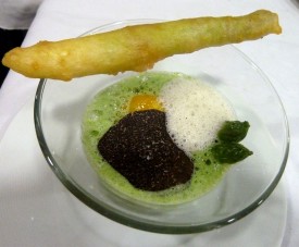 en velouté et tempura, quelques champignons, écume de truffes.