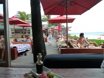 Le Ku Dé Ta donc, qui fête cette année ses dix ans d’existence… C’est la destination de tous les beautiful people australiens et Anglo-Saxons qui retrouvent ici un produit à leurs goûts, résolument le restaurant bar le plus chic et le plus cher de l’île. Ici, pas de place aux consommateurs qui traînent, aussitôt vous aurez fini votre verre, il sera retiré et on vous en proposera un autre, et si vous refusez, vous verrez arriver l’addition… Les tables doivent consommer ou se renouveler !