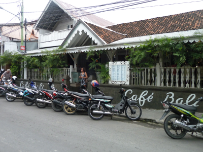Nous vous conseillions l’année passée de découvrir le Café Bali, pour son cadre, son emplacement central et sa cuisine, en 2011, vous pourrez continuer à apprécier son cadre, son ambiance, mais n’y retournez surtout pas pour la cuisine, qui a perdu tout son éclat, c’est fade, sans goût, et sans aucun intérêt. Nous y avons dégusté un carpaccio de thon grand modèle, sans assaisonnement et tiède, et une assiette de pâtes à la tomate et mozzarella qui sortaient de l’eau sans aucune préparation. Heureusement, ce n’est pas très cher. Le lieu continue à attirer les locaux qui y trouvent leur compte au déjeuner.