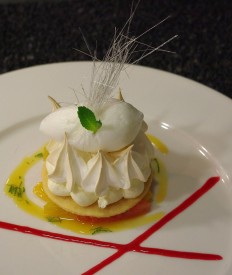 Fin sablé, crème légère au citron et fraîcheur d’agrumes à la menthe,