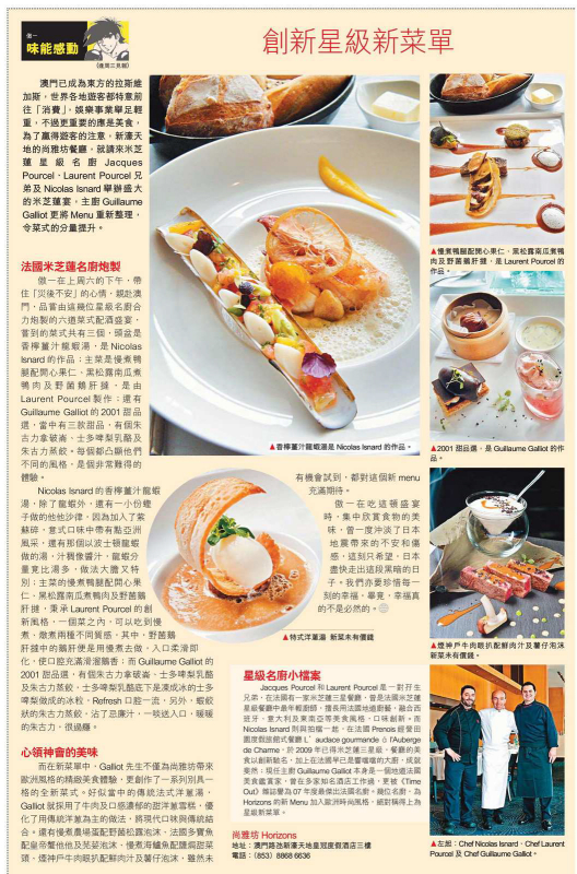 Distribué à 300 000 exemplaires, » Metropolis Daily » s’est fait l’écho de l’événement culinaire au Crown Hôtel en compagnie des quatre chefs : Pourcel, Galliot, Isnard et Lerouy.