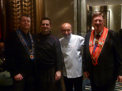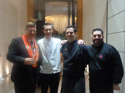 Les chefs Kristoffer Luczak, Laurent Pourcel et Guillaume Galliot accompagné de Mr. Don Hall, président de la Chaîne des Rôtisseurs de Macau.