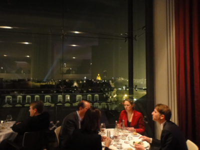Le décor tout de blanc vêtu, avec ses quelques alcôves en cuir jaune, ses grandes baies vitrées sur tout Paris, la tour Eiffel et la Seine, fait toujours son effet. On annonce pour le cœur du printemps une neuve terrasse avec sa vue grande angle. Pour l’heure, le lieu a du succès pour ses airs feutrés, son service policé, ses mets bien tenus, bien mis, en fraîcheur, finesse, netteté.