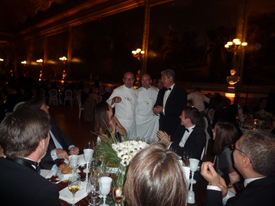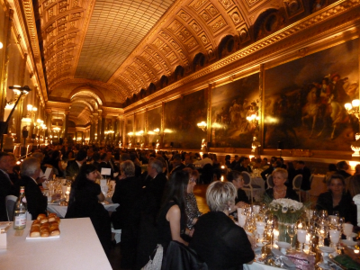 22h30, l’heure du dîner est bien entamée, la salle est comble de ses pratiquement 700 couverts, l’ensemble des convives a pris place dans cette galerie des Batailles, impressionnante galerie où tout est beau, on sent que nous sommes en train de vivre un moment exceptionnel.