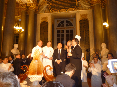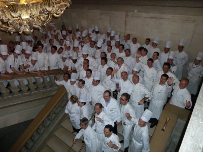 Tous les chefs défilèrent en salle au milieu des tables de convives qui allaient encore déguster les Paris-Brest, l’omelette Norvégienne, les tartes Tatin…. et toute les madeleines de Proust qu’avaient amenés l’ensemble des chefs !