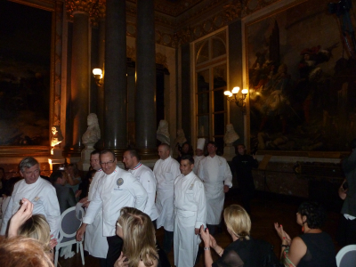 Les partenaires Nespresso, San Pellegrino, Potel et Chabot, All-Clad, Porcelaine Raynaud, le Château de Versailles, le Comité Interproffessionnel du foie gras ont également apporté leur pierre à l’édifice de ce grand dîner.
