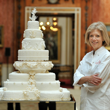 C’est la designer et pâtissière Fiona Cairns qui a eu la lourde tâche de réaliser ce gâteau. Il fallait que le gâteau impose sa présence et qu’il soit remarqué, mais pas qu’il soit trop dominant par rapport à la galerie de peinture. Feuilles de lierre, roses, glands, fleurs de pommier, deux jours complets sur place au Palais ont été nécessaires pour la finition du gâteau. Les quatre fleurs symbolisant le Royaume-Uni ont été représentées : la rose pour l’Angleterre, la jonquille pour le pays de Galles, le trèfle pour l’Irlande et le chardon pour l’Écosse. La pâtissière designer Fiona Cairns a commencé son activité sur la table de sa cuisine à créer des cupcakes, aujourd’hui son entreprise emploie 50 personnes dans le Leicestershire.
