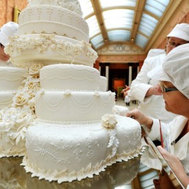 Le gâteau des mariés servi pour la réception donnée par Kate et William, ce vendredi, après les cérémonies de mariage, a pris 5 semaines à être fabriqué a révélé le tabloïd anglais « Daily Mirror ».