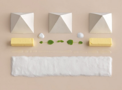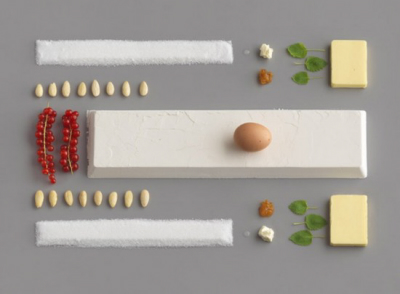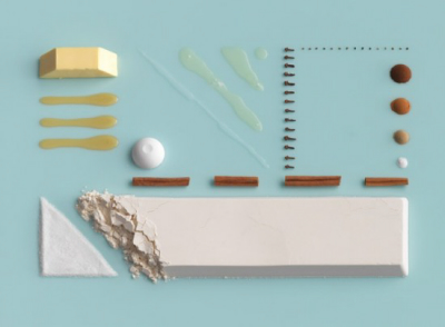 Sucre, farine, sel, poivre, vanille, beurre, chocolat, épices, crème, imaginez comment ces produits simples peuvent passer d’une œuvre graphique à une recette succulente. Le livre ne dit pas par quoi doit commencer la destruction de l’œuvre, mais en lisant la recette vous comprendrez aisément !