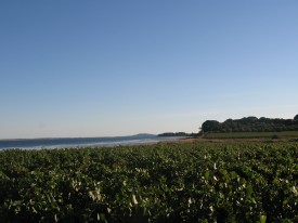 L’étang prodigue son humidité lors des nuits d’été, donnant au cru son caractère maritime.
