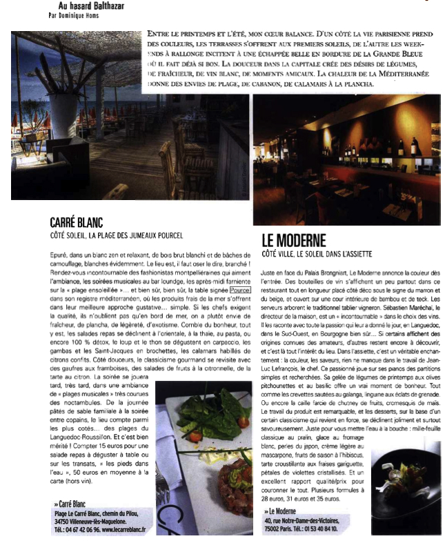 La plage Carré Blanc à l’honneur sur le magazine pour homme Balthazar, sous la plume de Dominique Homs, cabanons et calamars à la plancha… Il est pas beau le programme pour vous Messieurs, pour l’été ?… À consommer sans modération aucune !
