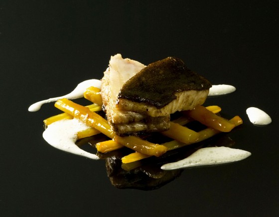 Tronçons de turbot rôti à l’arête, salsifis glacés à l’orange