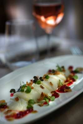 Carpaccio de Poulpes, Baby Calamars juste Poêlés à la Minute aux Eclats de Noisettes et Huile d’Argan