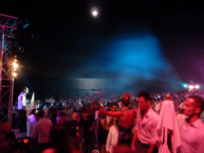 C’était sous une pleine lune de soir d’été que la soirée a débuté au restaurant, avant que la plage s’habille de musique, alors que de loin, on pouvait observer les nombreux feux d’artifice qui se déroulaient sur la côte en cette veille du 14 juillet.