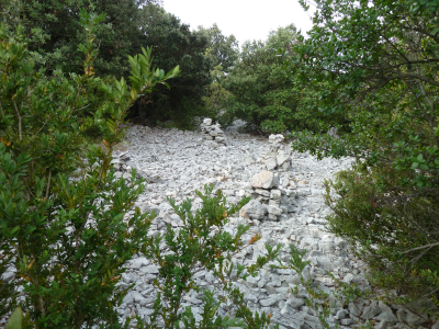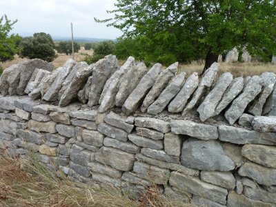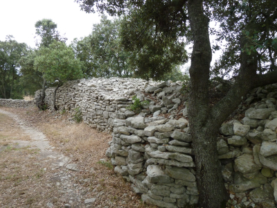 Très traditionnelles dans cette région de l’Hérault et pratiquement jusqu’au plateau du Larzac, ces constructions de murs de clôture sont assez communes par ici, même si elles sont très particulières. Les pierres posées à l’horizontale formaient l’assise du mur, celles plus plates disposées au-dessus et dressées en diagonale, servaient à empêcher les animaux (surtout les chèvres) de sauter les murs pour s’enfuir ou à protéger les potagers. À proximité de ces enclos, on trouve toujours des traces des lavognes, ces bassins improvisés servant à stocker l’eau et à abreuver les animaux.