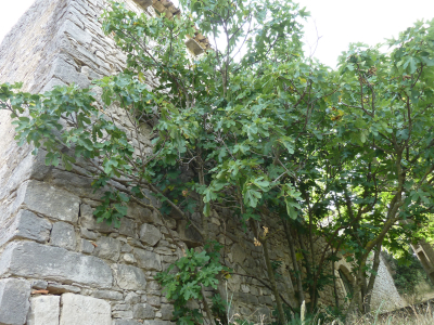 Les zones de pâturages sont les plus basses, avant de laisser la place aux forêts plus ardues. Ces espaces de pâturages ont été obtenus par défrichement, c’est là que les bergers installaient leurs habitations, on y trouvait tout autour des arbres fruitiers comme le figuier (ci-dessous) très commun par ici, les oliviers bien sûr, les amandiers, mais aussi des arbres moins communs comme le micocoulier (ci-dessus), le jujubier (plus rare) et l’arbousier, et même des mûriers, car par ici on élevait aussi des vers à soie. Au Moyen Âge, le Causse de l’Hortus faisait l’objet de nombreuses activités agricoles et pastorales.