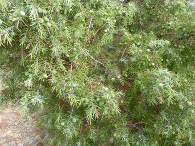 Ici c’est le genévrier cade, attention ça ne se cuisine pas ! Les feuilles pointues ressemblent à des aiguilles, cet arbre est très répandu dans les régions méditerranéennes, on le retrouve d’ailleurs jusqu’au Maroc et même en Iran. Ces arbustes composent les garrigues et les maquis, son bois est réputé pour sa dureté, et il est quasiment imputrescible. L’huile essentielle que produit ce bois est très réputée pour ses valeurs médicinales, mais aussi dans la cosmétique, notamment le shampoing, et comme répulsif d’insecte. Le seul fabricant restant, vous le trouverez dans le village de Claret.