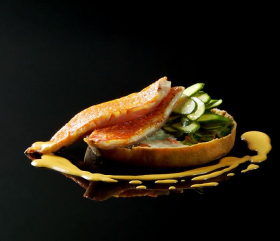 Sablé de caviar de courgettes au parmesan, filet de rouget