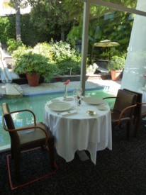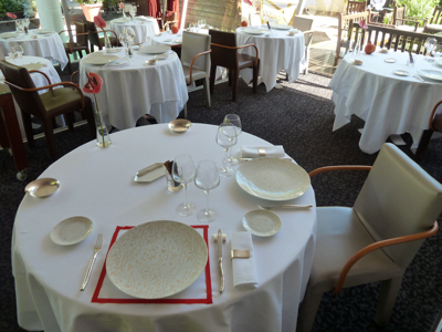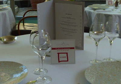 Le principe était simple au Jardin des Sens, des carrés rouges ont été tracés sur plusieurs tables, chaque Carré Rouge représentait un cadeau remis aux clients tirés au sort dans la liste des tables réservées. Les clients emportaient en fin de repas le présent correspondant au carré rouge. Lorsque la chaise était encadrée de rouge, c’était un bon pour un repas, lorsque c’était les verres, c’était un coffret de trois bouteilles de vins sélectionnées par notre sommelier, lorsque c’était l’assiette, c’était un livre de cuisine dédicacé par les chefs…