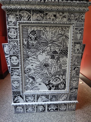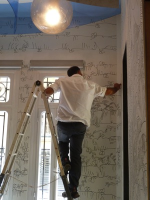 Au final, tel un papier peint, les murs se sont revêtus de ses dessins, il a laissé parler sa créativité, la salle de restaurant a trouvé une âme.