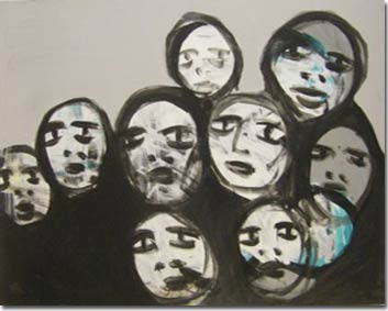 Son enfance à Beyrouth, son adolescence marquée par la guerre au Liban, le fossé qui s’est creusé ici entre les communautés, sont parmi ses thèmes de prédilection, la guerre avec son cortège d’atrocités individuelles et collectives se symbolise en de grands traits rageurs et des dégradées de noirs.