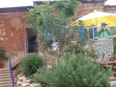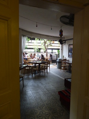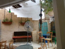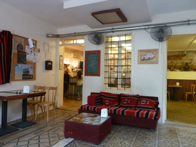Le décor est très local, maison à toit plat, murs de pierre ocre ou jaune, et à l’intérieur murs blanc habillés d’objets chinés faisant un clin d’œil au passé. On se sent comme dans une maison, depuis le bar vous pourrez apprécier la boisson locale le » Rak » et manger une cuisine simple et raffinée pour moins de 10 dollars, le tout sous une musique qui vous emporte loin vers l’Orient.