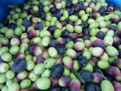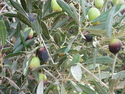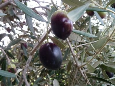 Les olives sont tournantes en ce moment, c’est le moment où elles changent de couleurs, et le bon moment aussi pour les cueillir.