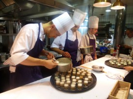 Beaucoup de travail en cuisine pour servir les 300 convives de la soirée.