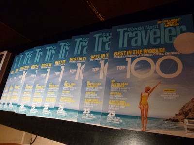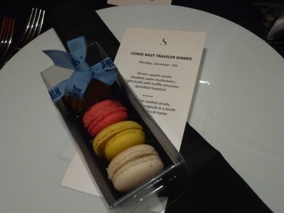Plusieurs repas prestigieux ont eu lieu dans la salle du restaurant des frères Pourcel situé sur le toit terrasse de l’hôtel, privatisé à trois reprises. Lundi, au déjeuner, ce fut tout d’abord le groupe d’hôtel » Dorchester » qui recevait la presse anglo-saxonne, le soir même, c’est le magazine » Conde Nast Travel » qui recevait ses partenaires, et mardi, American Express Centurion qui invitait ses clients.