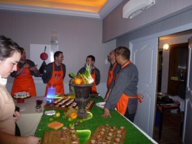 Au total, pas loin de 300 personnes se retrouvèrent à la porte de la belle demeure de Jacques Chibois où une haie de chefs les attendaient sous le son d’un orchestre de chambre. Accueil donc personnalisé pour l’ensemble des convives qui étaient constitués de tour operators, d’agents de voyage de luxe, de journalistes, de relations publiques et de chefs.