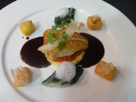 le filet de rouget grillé au parfum d’orange et croustillant de fenouil,