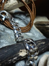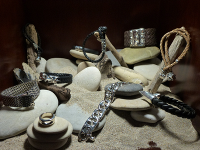 L’ensemble des bijoux est créé à partir d’argent de très haute qualité et de cuir tressé. Faciles à porter, ils constituent essentiellement une collection homme, mais surement que tout le monde y trouvera son bonheur.