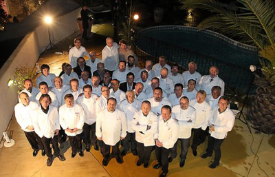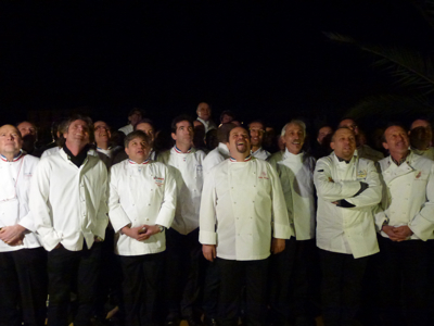 Tous les chefs réunis à l’extérieur, près de piscine, pour la photo de famille…. celle des chefs !