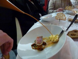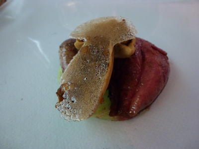 Le menu concocté par Gilles Goujon était éclatant. Il reprenait ses spécialités, jouait avec les interdits, et surtout, faisait la part belle aux meilleurs produits.