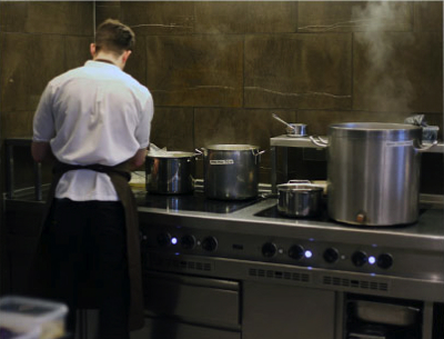 De cette façon, les clients ont l’occasion de rencontrer une partie du personnel et les employés ont une vision de l’ambiance en salle et ne sont pas « enfermés » en cuisine pendant tout le service, un joli bal chorégraphié.
