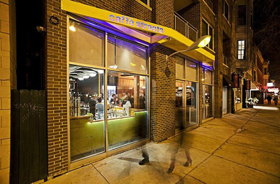 C’est le cabinet d’architecte & design américain » Studio na « , à Chicago, qui l’a créé sur des codes totalement actuels, objets détournés (lampadaires de rue au-dessus du comptoir), habillage de bois clairs, grande ouverture sur la rue, ambiance décontractée et sociale.