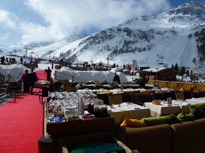 Il est 11h45 lorsque les premiers clients arrivent pour déjeuner. Jusqu’à 16h ce sera un ballet non stop d’arrivées et de départs des skieurs qui désirent vite manger pour repartir sur les pistes, à moins qu’ils ne décident définitivement de profiter des nombreux transats disposés sur la neige au-devant du restaurant.