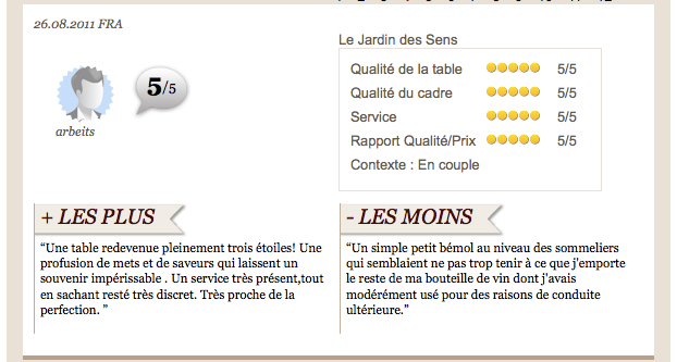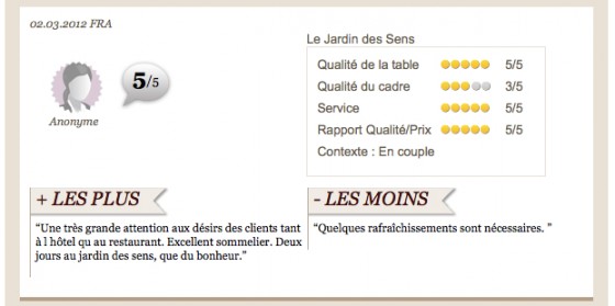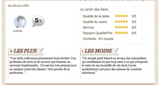 Nous nous sommes donc rendus sur le site pour consulter ce qui se raconte sur Le Jardin des Sens, puisque l’on nous a retiré une étoile, peut-être allons nous avoir une piste d’après les commentaires…