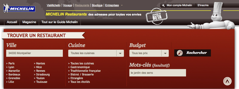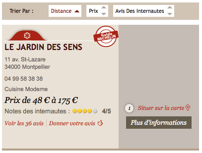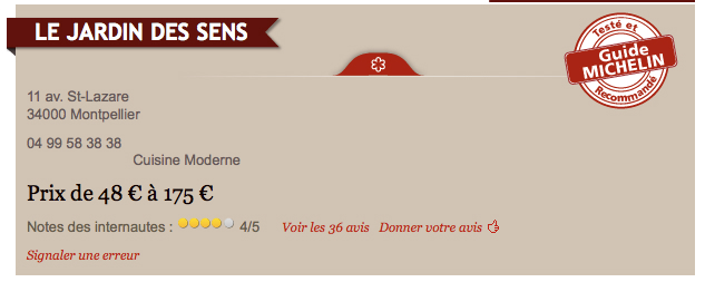 Nous nous sommes rendus sur le site www.restaurant-michelin.fr sur la page du Jardin des Sens