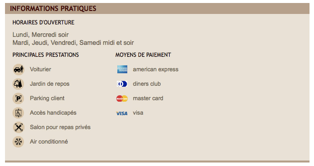 Les jours et heures d’ouverture, les principales prestations, les moyens de paiements…