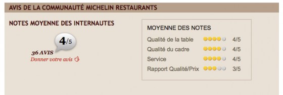 Alors est arrivée la date du 6 mars, jour où le site du guide Rouge restaurant.michelin.fr a ouvert son écran. C’est un vrai évènement que lance le Michelin, de l’interactivité avec le public, il suffit de s’inscrire pour donner en live son ressenti sur l’établissement dans lequel vous avez mangé.