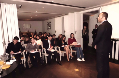 C’est Harry Vieujot, le directeur général de Maison Pourcel qui a fait une présentation générale sur le groupe et ensuite, plus spécifiquement, sur l’implantation en Chine, le Pavillon France à l’Exposition universelle de Shanghai, le restaurant 6Sens, la création de Maison Pourcel, puis ce fut place aux questions des étudiants.