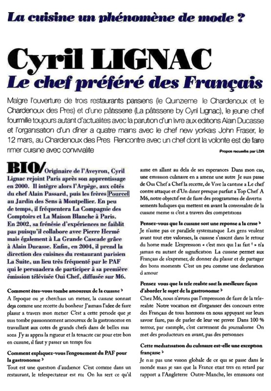 Cyril Lignac n’en finit pas de rebondir, que ce soit à la télé ou dans ses restaurants (3 adresses et une pâtisserie à Paris), il reste dans l’actualité et même la crée. Un jeune chef qui ne manque pas de tonus et qui bouge le cocotier de la cuisine. Un parcours étonnant qui a croisé longuement la route des frères Pourcel, à redécouvrir !