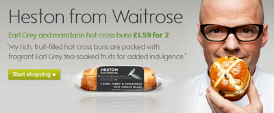 Cela fait quelques années que le chef anglais Heston Blumenthal collabore avec la marque de supermarché haut de gamme Waitrose. Dernièrement, c’est pour la création d’un » Earl Grey & Mandarin Hot Cross Buns « . Ses conseils et cette collaboration ont permis de créer de nombreuses préparations signées du chef que l’on retrouve dans les rayons de ces épiceries où le créneau c’est : la qualité et rien d’autre.