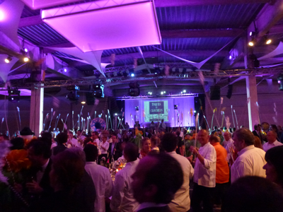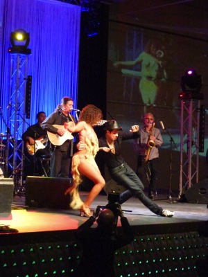 La très impressionnante salle du dîner où étaient alignées les tables était habillée des couleurs du Brésil, l’ambiance musicale et les prestations données par les artistes n’ont pas mis longtemps à attirer les invités du dîner à s’approcher de la scène pour participer aux danses typiques et enjouées du Brésil.